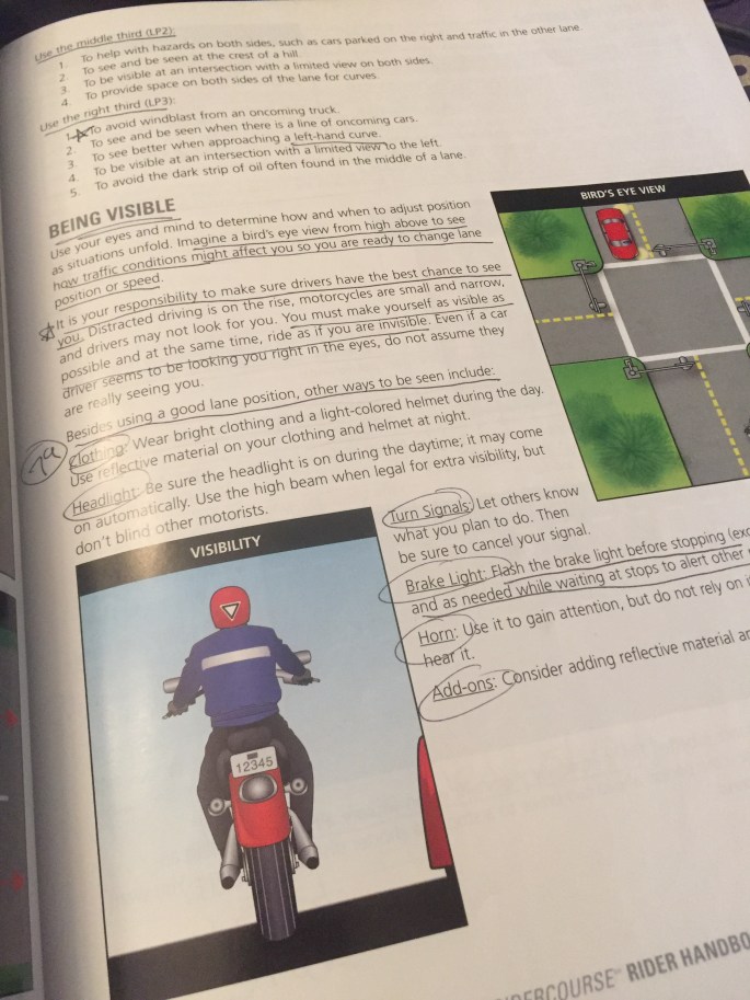 Today I finished up studying the motorcycle course material. The feeling has now become a familiar one – that “drinking from a firehose” feeling, that there is so much to know, so much ahead of you to practice. There’s the fear at not being able to assimilate it all quickly enough for how fast you’ll … Continue reading Motorcycle Riding, Wrapping up study prep